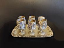 Plateau apéritif de marque Vereco en verre fumé et brun