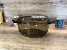 Cocotte Arcopal couvercle, en verre fumé Vintage